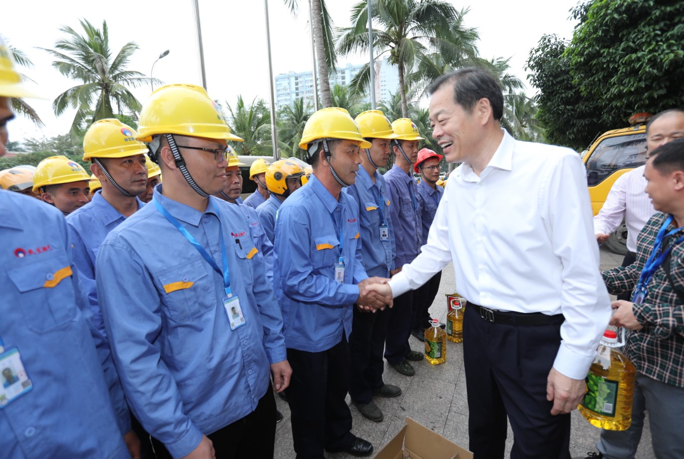 1月22日下午,海南省人民政府副省長(zhǎng)馮忠華一行抵達(dá)民生大廈,慰問民生眾和集團(tuán)旗下子公司民生燃?xì)庖痪€員工。海南民生燃?xì)夂??10搶險(xiǎn)聯(lián)動(dòng)員工及巡檢員工代表在??诂F(xiàn)場(chǎng)接受慰問,民生燃?xì)馊f寧、陵水、三亞、保亭、樂東、昌江等公司員工通過公司視頻會(huì)議系統(tǒng)接受慰問。海南省人民政府辦公廳一級(jí)巡視員方少民、住房和城鄉(xiāng)建設(shè)廳廳長(zhǎng)霍巨燃、副廳長(zhǎng)劉聯(lián)偉等省市相關(guān)單位領(lǐng)導(dǎo)陪同。