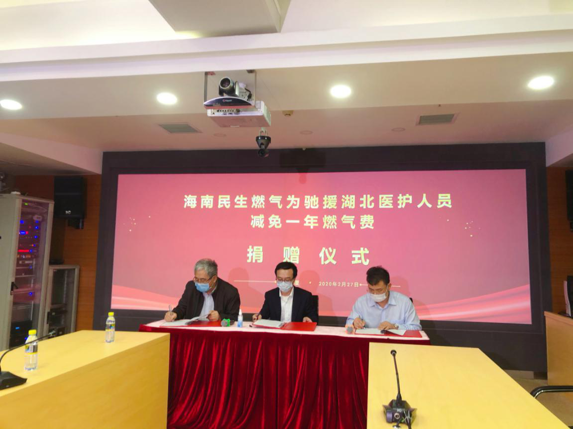 2月27日,“民生燃?xì)鉃轳Y援湖北醫(yī)護(hù)人員減免燃?xì)赓M(fèi)捐贈(zèng)儀式”在民生大廈舉行,海南省住房和城鄉(xiāng)建設(shè)廳廳長(zhǎng)霍巨燃、海南省衛(wèi)生健康委員會(huì)副主任周國明及民生燃?xì)庀嚓P(guān)領(lǐng)導(dǎo)出席此次捐贈(zèng)活動(dòng)。根據(jù)協(xié)議,民生燃?xì)庾?020年2月份起為其經(jīng)營區(qū)域內(nèi)的所有援鄂醫(yī)護(hù)人員減免一年(2020年2月1日-2021年1月31日)管道燃?xì)赓M(fèi),包括海口地區(qū)非管道燃?xì)庥脩粢部擅赓M(fèi)享受一年瓶裝液化氣服務(wù)。